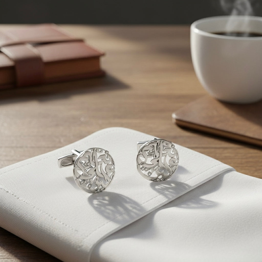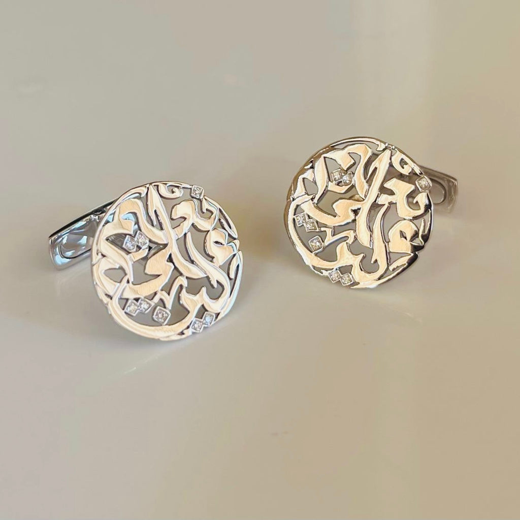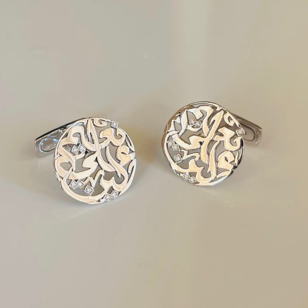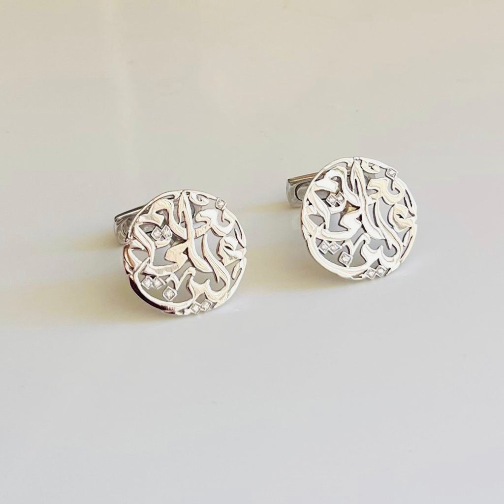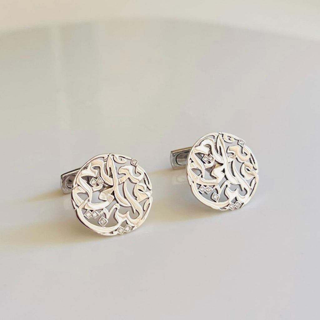 • Please note that the weight of the gold diamonds may vary each time, as every cufflink is customized in a different Arabic calligraphy design.